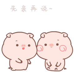 An adorable Tkthao219 Bubududu sticker featuring two pink pigs cuddling with the Chinese caption 'Kiss first, then talk~'.