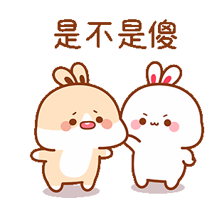 Tkthao219's cute cartoon bunnies with the Chinese caption '是不是傻' (Are you stupid?), expressing confusion or disbelief.