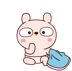 A cute, surprised baby rabbit character with rosy cheeks, wearing a diaper and holding a blue blanket.