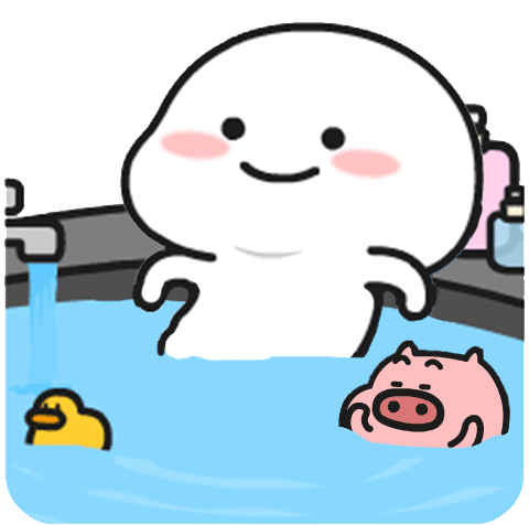 Tkthao219 Quby enjoys a cheerful bath with a yellow rubber duck and a pink pig, smiling happily.
