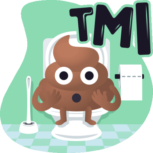 a cartoon illustration of a poop sitting on a toilet with the word tmi below it