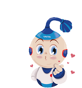 Tng Unta character blows a kiss and makes a finger heart gesture, surrounded by floating pink hearts, a cute animated sticker.