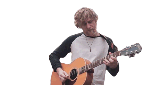 Taburete, a musician with blonde hair, plays an acoustic guitar with focus and passion in this animated sticker.