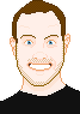 A pixel art sticker featuring comedian Todd Armstrong, also known as Armtoddstrong, in a retro, pixelated style.