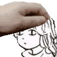 A hand places a hat on a girl's head in this black and white animation from Tokyo Revengers, featuring Mikey and the Toman gang.