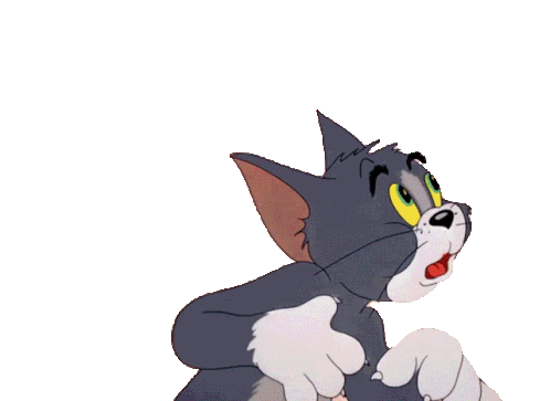 Tom Cat from Tom & Jerry, looking utterly shocked and scared, covering his face with his paws.