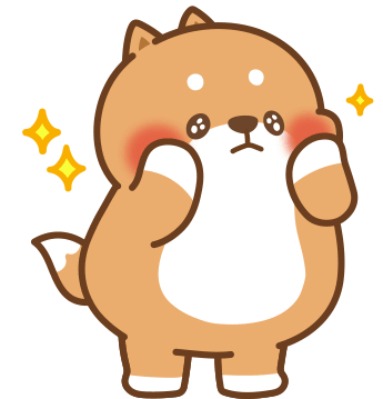 Tontonfriends Yuta, the chubby dog, blushes adorably with rosy cheeks and sparkling eyes, showing shyness.