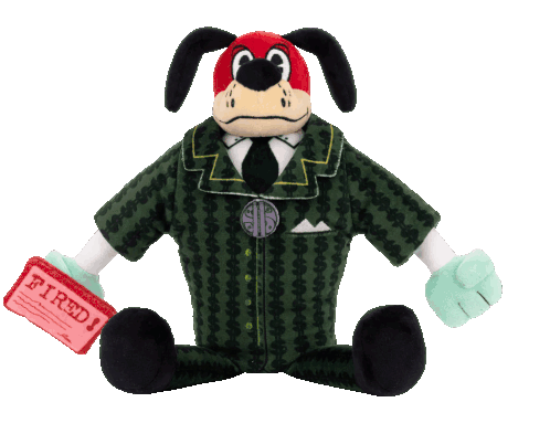 Lord Lowden Clear from Toontown Rewritten, a stuffed dog character, holds up a red card that says 'CREDIT'.