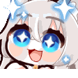 a close up of a cartoon character with blue eyes and a bow on her head .