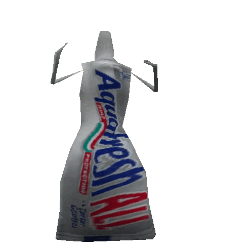 a tube of aquafresh toothpaste that looks like a dress on a mannequin