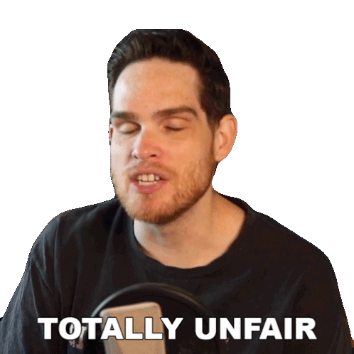 Sam Johnson expresses his frustration, stating 'Totally Unfair' with a direct gaze, conveying a sense of injustice.