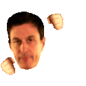 Pixelated Toto Wolff's face with fists, expressing intense rage or excitement, perfect for F1 fans.
