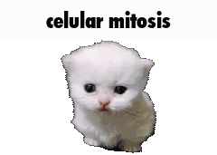 Tourist Moogus cat undergoes cellular mitosis, duplicating into two identical fluffy kittens.