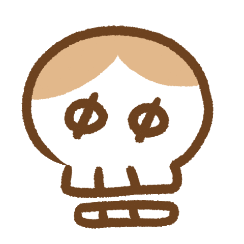 A cute, cartoon-style skull with brown hair and unique 'ø' symbols for eyes, giving a playful yet mortal vibe.