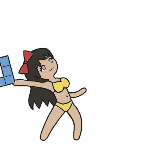 Animated girl in a yellow bikini gets hit on the head by a Tetris block and cries in this transparent sticker.