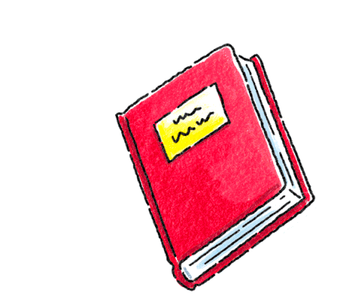 A hand-drawn animated sticker of an open book with pages rapidly flipping, suggesting reading, studying, or a quick transition.