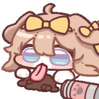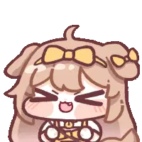 Animated sticker of a pink-haired girl from Trickical Trickly Revive, winking and blushing with puffed cheeks.