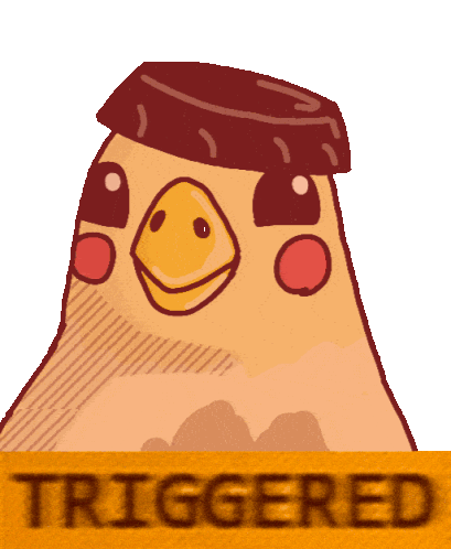 An animated sticker by Gued3s featuring a 'triggered' bird character from Ipanema, wearing a hat and looking angry.