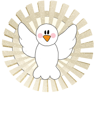 A white dove, symbolizing the Holy Spirit, with an orange beak, surrounded by radiant golden rays.