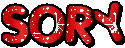 A red 'SORRY' with a tear drop, conveying sadness and apology, on a clean white background.