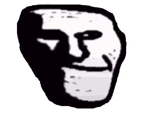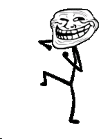A classic Trollface meme character, depicted as a stick figure, joyfully dances in a black and white animation.
