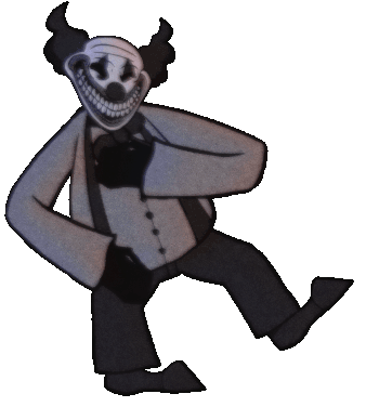 An animated sticker of the creepy Trollge Clown character, depicted in a grayscale, menacing pose.