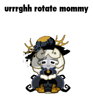 Truffle Cookie from Cookie Run rotates rapidly, exclaiming "urrrghh rotate mommy" in a humorous animation.