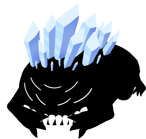 A stylized black monster with glowing blue crystals on its back, from Truth And Tales Moana, appears to be sleeping.