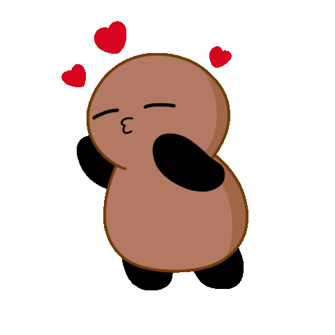 Tubby Nugget character blowing a kiss with floating hearts, expressing love and affection.