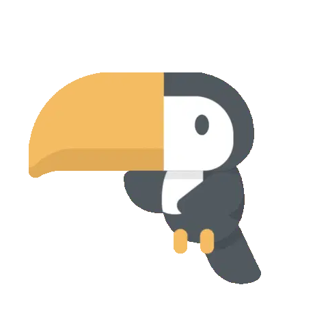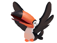 A cheerful animated toucan from Praia Bingo, flapping its wings and dancing happily, bringing a vibrant and playful mood.