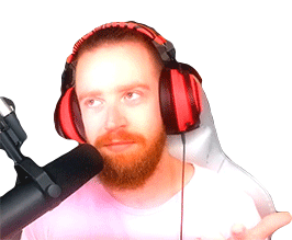 Luba Tv sticker featuring a man with a beard, red headphones, and a microphone, pondering "Everything Can Be Fake."