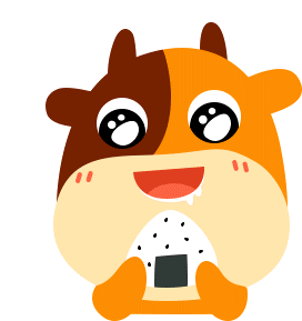 a cartoon cow holding a rice ball in its hands