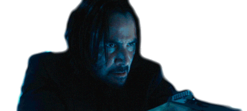 Keanu Reeves as John Wick in John Wick 3, turning with an intense gaze, holding a gun.