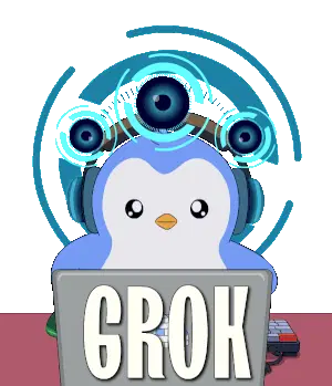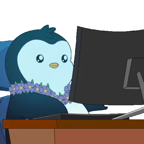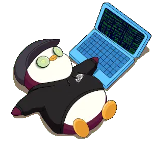 Tux, the iconic Linux penguin mascot, is depicted in pixel art, diligently coding on a laptop with an 'H' on its screen.