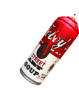 A vibrant sticker featuring a spray paint can designed as a 'Tvboy Street Art Soup' can, blending pop art and graffiti.