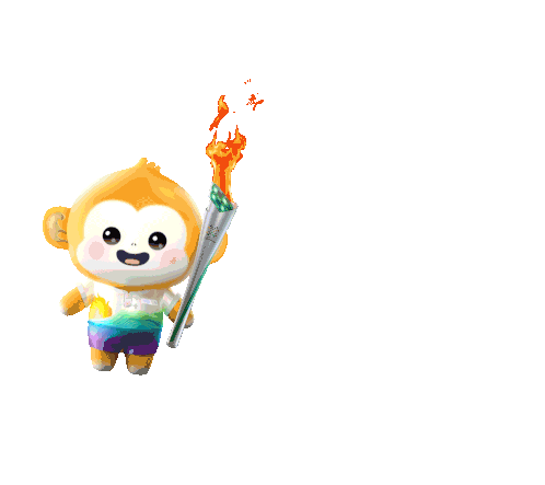 a monkey mascot holding a torch with the words see you soon in chengdu