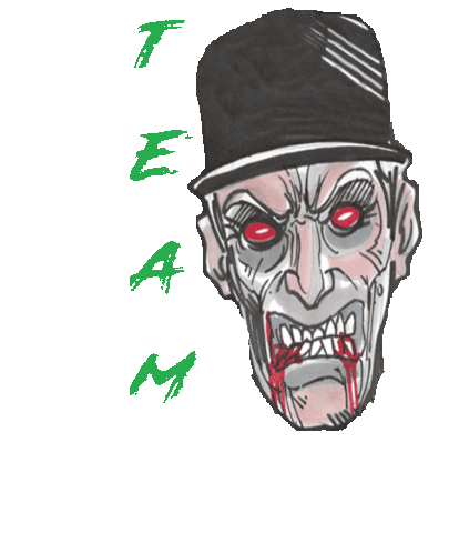 A scary, red-eyed vampire man wearing a hat with a bloody mouth, representing the Twixnkat Team Twix. This sticker features a creepy illustration.