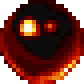 a pixel art illustration of a ghost with glowing eyes and a black mask .