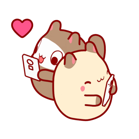 Two adorable cartoon characters are engrossed in texting on their devices, with hearts floating around them.