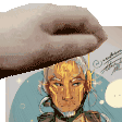 A hand 'petpets' a drawing of Tyr Vaughn from Aceouttatime, a fun and interactive animated sticker.