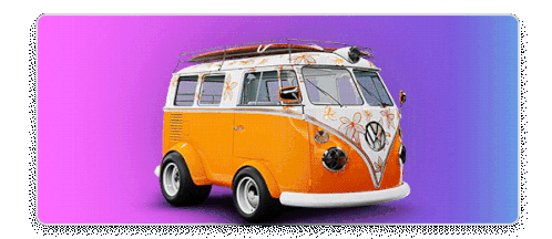 a volkswagen van with a surfboard on top of it