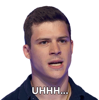 Bryan from Family Feud Canada makes a thoughtful 'Uhhh...' expression, pondering a question.