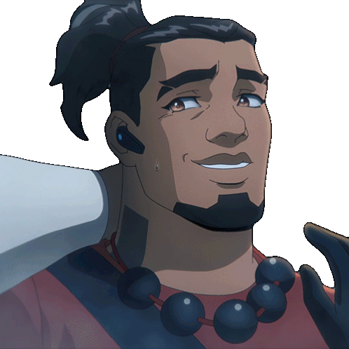 Jonah Maiava looks hesitant and a bit shy, saying "Uhhh" with a hand to his neck, from Tomb Raider.