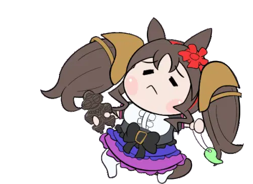 An animated sticker of a cute horse girl character from the popular Japanese anime 'Umamusume Pretty Derby', winking playfully.