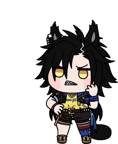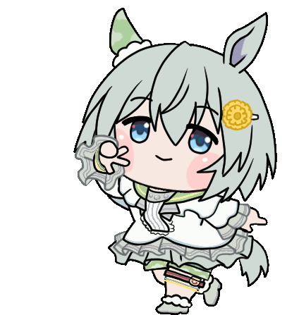 An animated sticker from Umamusume Pretty Derby, featuring a charming girl with white hair and a flower.
