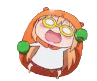 Umaru-chan, in her iconic hamster hoodie, joyfully dances and shakes green maracas in this animated sticker.