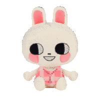 Umi, the adorable white rabbit plushie from Rental the Game, spins playfully, showcasing its pink checkered dress.
