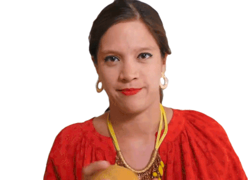 La Cooquette with a thoughtful expression, pointing her finger up as if she has an idea or is making a point.