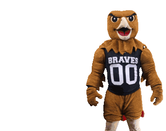 Animated sticker of the UNCP Braves mascot, a hawk, wearing a 'BRAVES 00' jersey and gesturing.