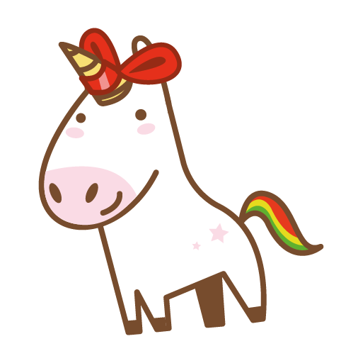 A charming animated sticker of Unicornio Tacochapeu, a cute white unicorn with a red bow, rainbow tail, and pink stars.